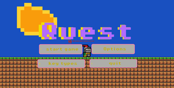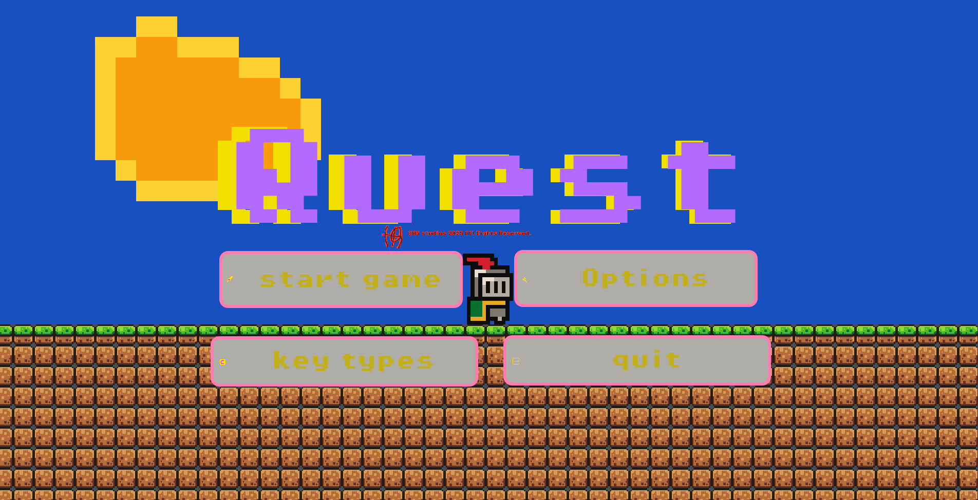 Quest is a simple platformer, and my 1st ever standalone game, and I will add more and more to the game as I go on and on getting more acquainted with my skills and build test worlds where demos have full worlds ;)